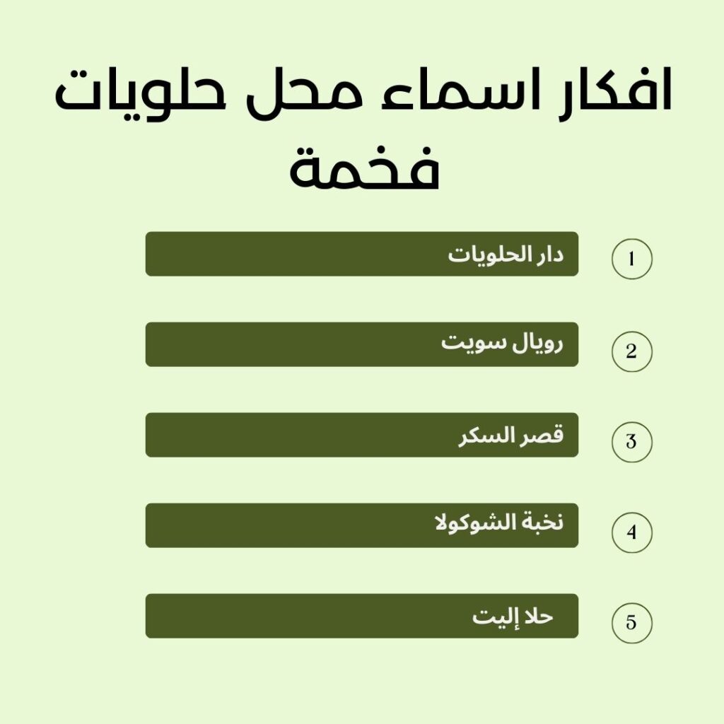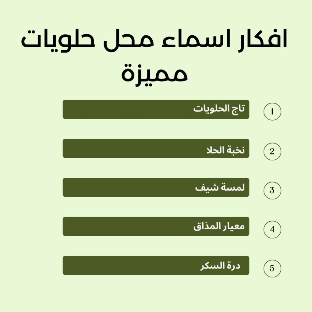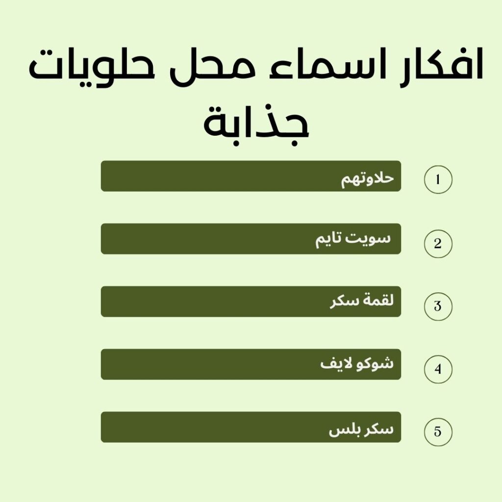 اختيار اسم محل حلويات خطوة أساسية في نجاح المشروع، لأن الاسم هو أول حاجة بتوصل للعميل وبتفضل في ذهنه، ومع كل افكار اسماء محل حلويات اللي اتعرضت تقدر تختار الاسم اللي يعبر عن ذوقك ونوعية الحلويات اللي هتقدمها سواء شرقي أو غربي، والأهم إنه يكون سهل ومميز ومرتبط بالسعادة والطعم الحلو عشان يساعدك تبني براند قوي وينتشر بسرعة وثقة.