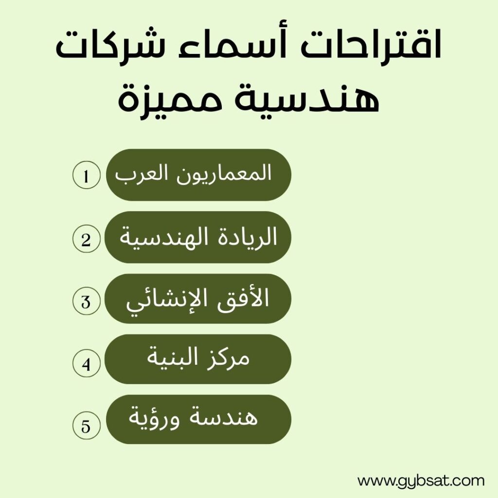 1. اقتراحات لأفضل الأسماء لشركات هندسية