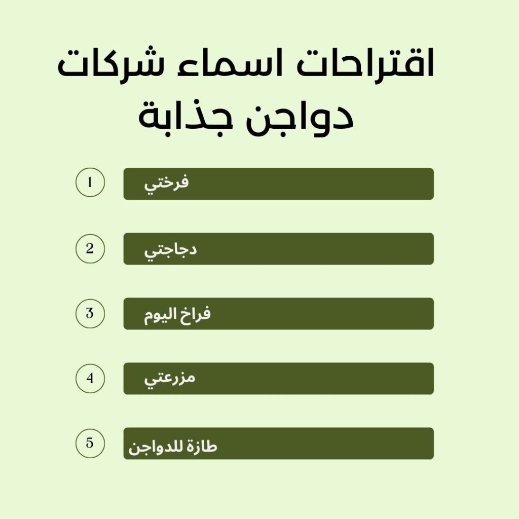 مجال تربية وتجارة الدواجن من أهم المجالات الغذائية في الوقت الحالي، لأنه مرتبط بشكل مباشر بالاستهلاك اليومي للأسر والمطاعم والفنادق، ومع زيادة الطلب على المنتجات الغذائية الآمنة أصبح تأسيس شركة دواجن ناجحة يحتاج لتخطيط جيد من البداية، وأهم خطوة في التخطيط هي اختيار اسم مناسب ومعبر، لأن الاسم هو أول حاجة بتوصل للعميل وبتكوّن عنده انطباع مبدئي عن جودة المنتج ومستوى النظافة والاحتراف، وكل ما كان الاسم واضح وسهل كل ما كان انتشاره أسرع وساهم في بناء علامة تجارية قوية في السوق.